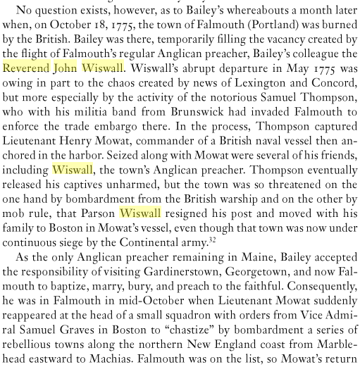 Rev. Wiswall is mentioned in this history of Falmouth (Maine):
